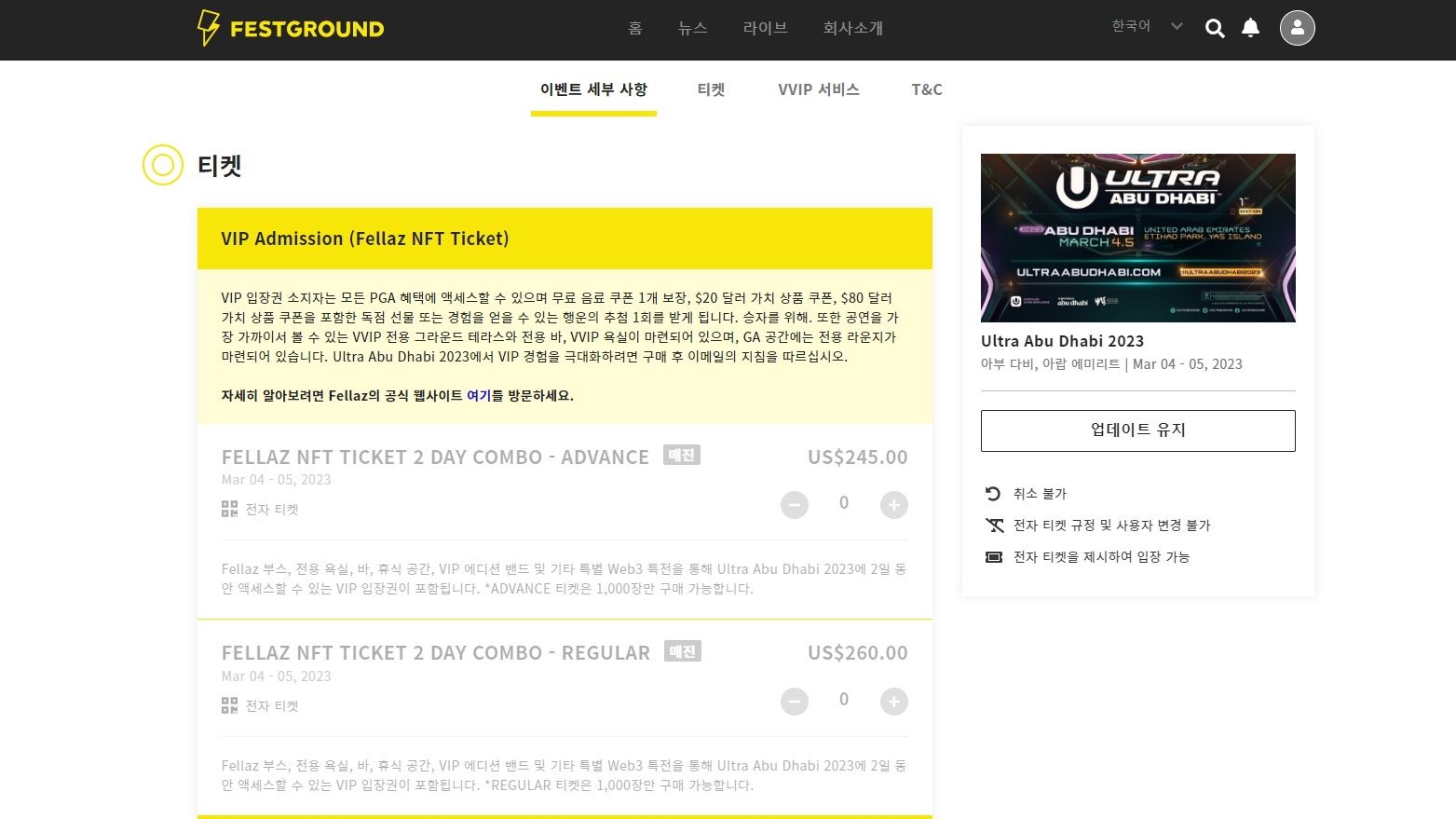 # 2023.03 울트라 아부다비 | 티켓 입장 인증 & 기념 NFT 에어드랍